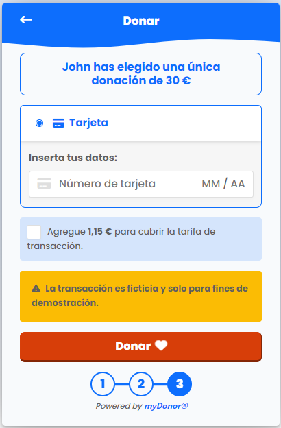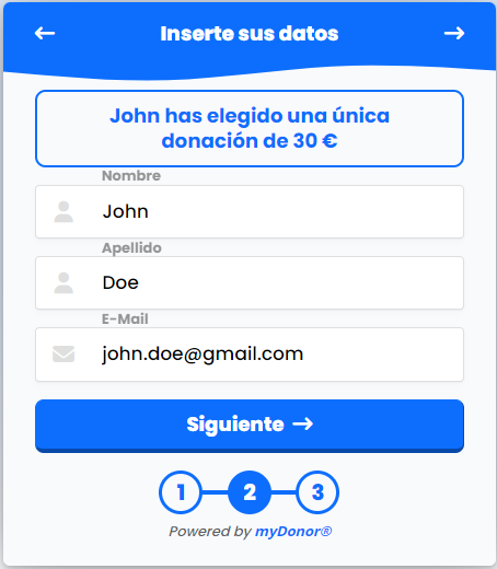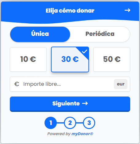 La solución perfecta para iniciarse en la captación de fondos online. La excelencia en recaudación digital al alcance de todas las ONGs y entidades sin ánimo de lucro. Puede ser insertado en cualquier parte de tu sitio web y en varias páginas distintas, ofreciendo un formulario de captación de donaciones totalmente personalizado por ti. Además, los datos de donaciones recibidas se pueden registrar directamente en el CRM social myDonor Green®.